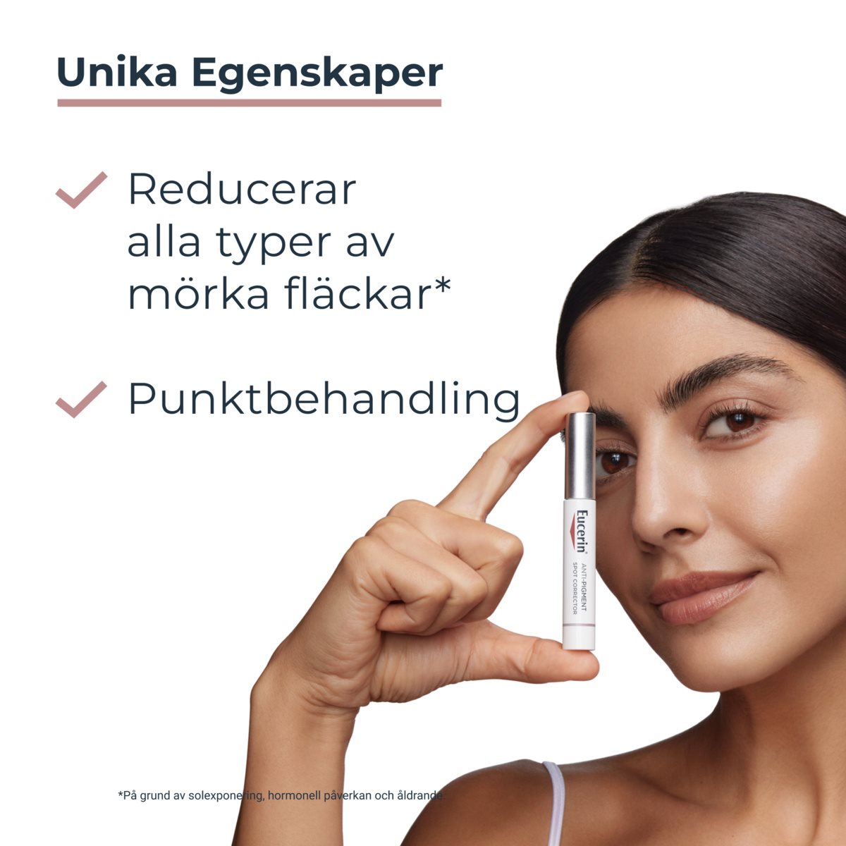 Eucerin ANTI-PIGMENT Spot Corrector är en precisionslösning för specifika områden som minskar alla typer av mörka fläckar*. Gelen innehåller den patenterade ingrediensen Thiamidol®, som ger en jämnare hudton från dag ett, med första synliga resultat inom två veckor. Passar alla hudtoner.