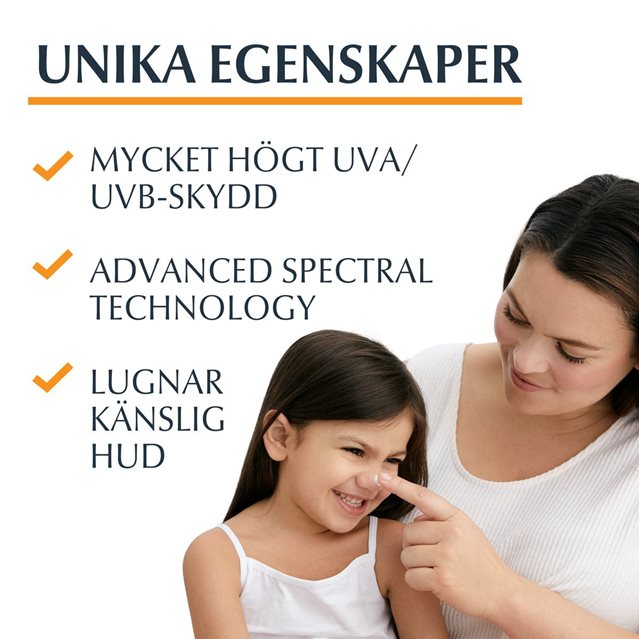 Eucerins solskyddsprodukters avancerade spektralteknologi kombinerar pålitliga bredspektrums- och fotostabila UVA-/UVB-filter1 för mycket högt UV-skydd med