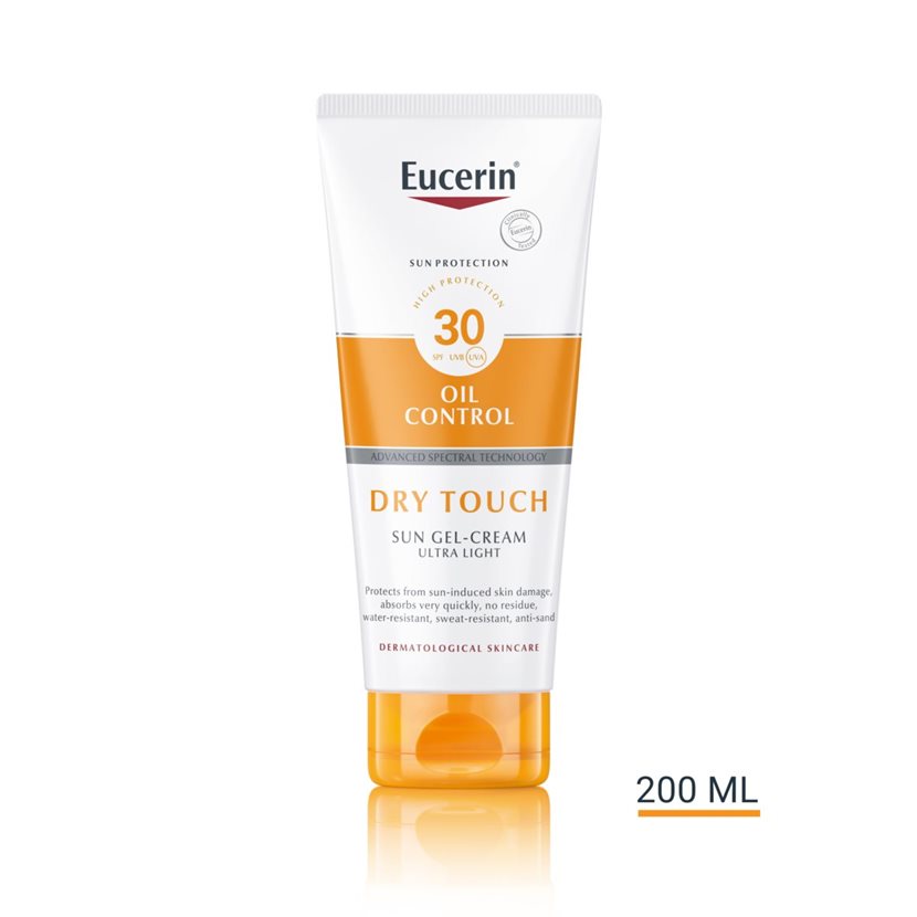 Det här gelcreme-solskyddet har ett högt UV-skydd 1 och Eucerins Advanced Spectral Technology kombinerar dessa pålitliga bredspektrums- och fotostabila UVA-/UVB-filter med Licochalcone A för att neutralisera fria radikaler som orsakas av UV- och HEVIS-ljus. Formulan innehåller även Glycyrrhetinic Acid (Glycyrrhizinsyra), som stöttar hudens egna återhämtning och talgreglerande Oil Control Technology med mattgörande pigment som omedelbart ger en torr yta på huden.